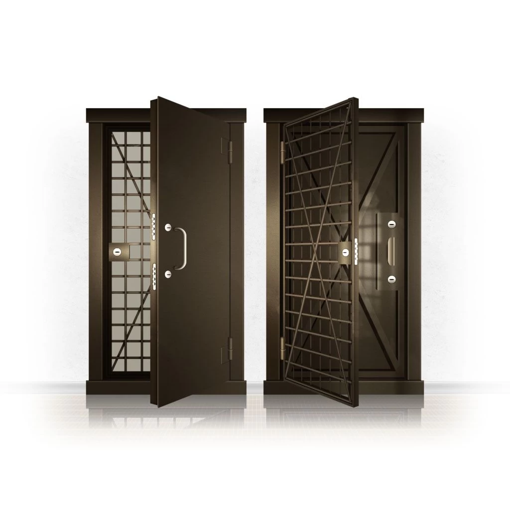 Металлические двери КХО и КХН представляют собой входные блоки, обладающие высоким уровнем взломостойкости и состоят из трех основных элементов: усиленного каркаса, сплошного металлического полотна и решетчатой двери. Дверной блок изготавливается из стального уголка 100*100 мм. Места крепления блока к стене цементируются и закрываются стальными наличниками шириной 40 мм. Крепеж заходит вглубь стены на 80 мм. В конструкции внешней створки монтируются ребра жесткости, для обшивки используется сталь толщиной не менее 3 мм. Внутренняя решетка изготавливается из прутка диаметром 16 мм. Размер ячеек решетки должен составлять не более 15 на 15 см. В точках пересечения прутья надежно приваривают друг к другу. В КХО и КХН необходимо поддерживать определенную температуру и влажность. Для этого внутреннее пространство глухой двери заполняется теплоизоляционным материалом, а по периметру двери приклеивается уплотнитель. Такие двери оборудуются замками с повышенным уровнем взломостойкости. Специализированные двери КХО и КХН в Мезене могут быть оснащены сигнализацией, в конструкции могут быть проушины для навесного замка и элементами для опечатывания. Если идет речь о двери в комнату хранения оружия, в створке оборудуется окно для выдачи оружия и спец. средств, которое накрывается стальной дверцей.
